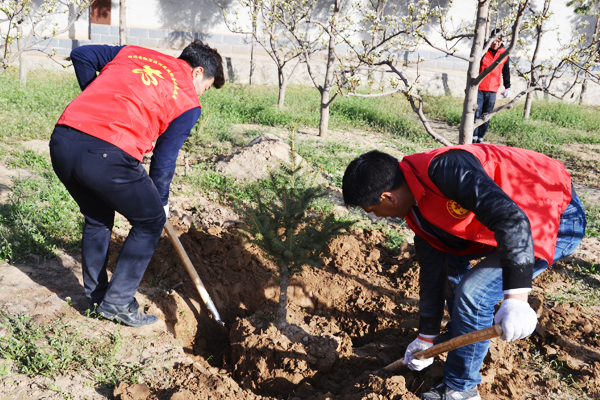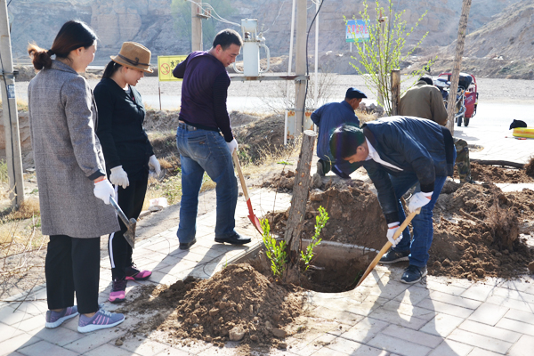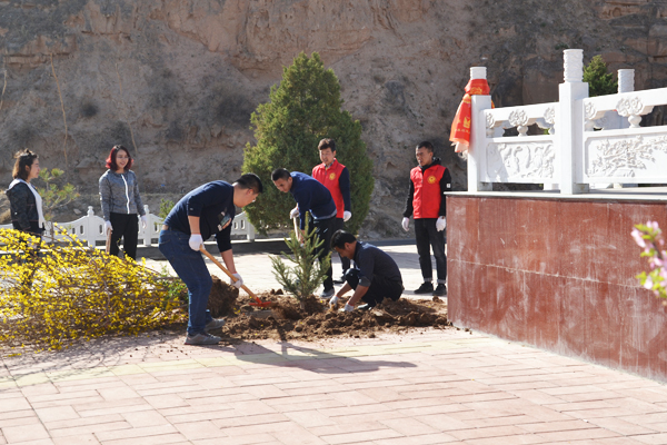 上午8点30分,祭扫活动正式开始。活动中大家你争我抢、干劲十足,有移树入坑、挥锹填土植树的;有手拾瓦砾、扫叶入袋清理停车场的;有弯腰扫地、提水擦拭纪念雕塑的,大家通过植树护绿大扫除的形式悼念革命先烈。经过三个多小时的奋战,小树苗屹立风中,停车场和纪念雕周围的卫生死角全部打扫干净。最后,大家整理着装,排列整齐,向红军英烈敬献花篮,三鞠躬并默哀三分钟表达哀思之情。