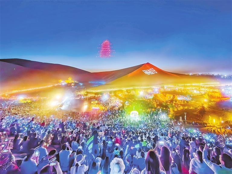 敦煌鸣沙山月牙泉景区星空演唱活动。)