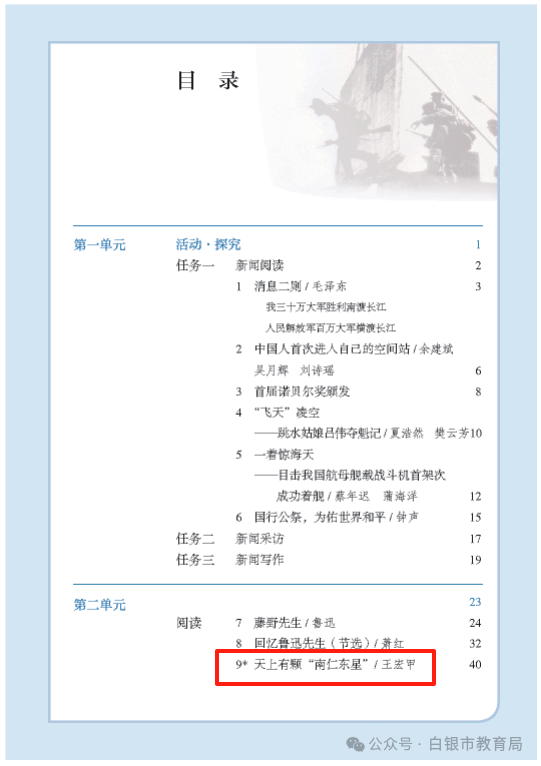 “这是我国语文教材编写的优良传统。”尤炜表示,“如果要说‘新趋势’,《天上有颗‘南仁东星’》与七年级下册《青春之光》一样,都是由专业作家为语文教材专门编写的文章。它体现出本轮教材修订在选文建设上的一大特点,即更多地寻求当代作者支撑,强化对新时代伟大成就的反映,更好地满足新时期教育教学的需要,这也为未来打造更多反映新形势、新成就的精品课文积累了宝贵经验。”