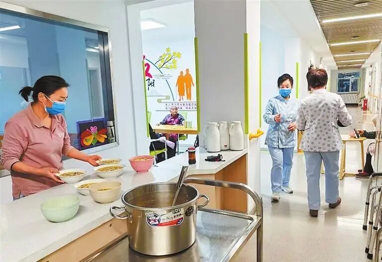 永昌县综合养老服务中心的工作人员为老人端送晚饭。(本文图片除署名外均由记者李永萍拍摄)