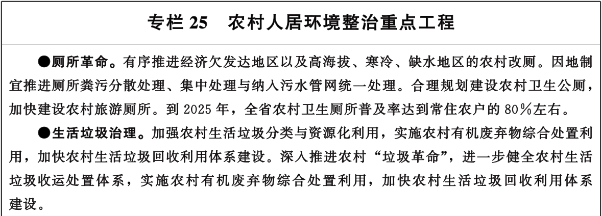 到2025年,农业农村现代化取得重要进展,农业基础更加稳固,粮食和重要农产品供给保障更加有力,农业质量效益和竞争力明显提升,现代乡村产业体系基本形成。农村生态环境得到明显改善。全省乡村面貌发生显著变化,乡村发展活力充分激发,农民获得感、幸福感、安全感明显提高。
