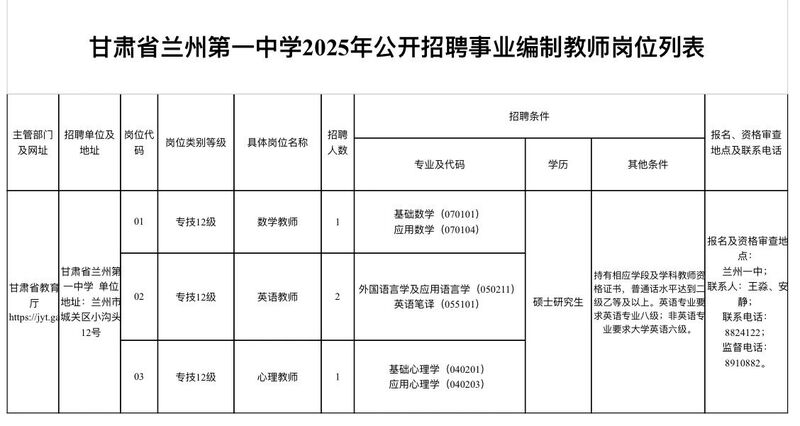 | 甘肃省兰州第一中学2025年公开招聘事业编制工作人员公告 | |