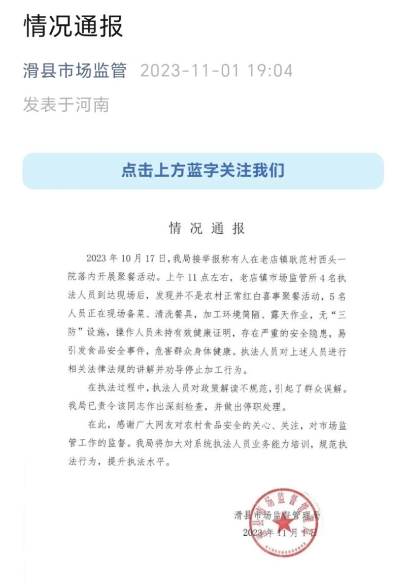 | 红白喜事办席,不办食品证不行?通报来了!停职! | |