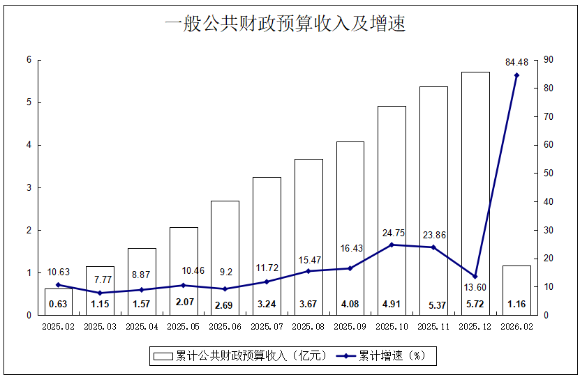 1-2月,在县委县政府的坚强领导下,全县上下认真学习贯彻党的二十大和二十届历次全会精神和中央、省市县委经济工作会议精神,按照党中央、国务院决策部署和省市县委、省市县政府工作要求,抓重点、强举措、重落实、奋力推动高质量发展,全县规上工业经济稳定发展,固定资产投资较快增长,限额以上社会消费品零售总额较快增长,财政收增支增,金融存贷稳健运行。 (一)规上工业经济稳定发展 1-2月,全县规模以上工业企业完成增加值同比下降0.9%。从行业分类看:煤炭开采和洗选业累计完成增加值下降10.2%,农副食品加工业累计完成增加值增长185.2%,化学原料和化学制品制造业累计完成增加值增长11.1%,非金属矿物制品业累计完成增加值下降66.2%,有色金属冶炼和延压加工业累计完成增加值增长2.5%,电力、热力生产和供应累计完成增加值增长14.8%,燃气生产和供应业累计完成增加值增长15.3%;从主要产品产量看:规模以上工业企业生产电石46752.64吨,同比增长3.98%,石灰42783.79吨,同比下降1.52%,商品混凝土3.40万立方米,同比下降61.64%,石墨及碳素制品21.3吨,同比下降76.85%,电解铝5.02万吨,同比增长2.04%,铝材1312.59吨,同比下降83.8%,锌46.9吨,同比下降29.73%;从企业效益看:全县规模以上工业企业实现营业收入231115.3万元,同比增长15.14%;实现利润总额46494.6万元。 (二)固定资产投资较快增长 1-2月份,全县累计完成固定资产投资同比增长23.70%,其中,城镇固定资产投资累计完成额增长5.63%;房地产开发投资累计完成额增长1131.28%。从产业划分看:第一产业完成投资额无同比增速,第二产业完成投资额下降11.24%,其中工业完成投资额下降11.24%;第三产业完成投资额下降28.58%。从经济类型看:公有经济完成投资额同比增长36.08%;民间投资完成投资额同比下降4.11%。 (三)社会消费品零售总额较快增长 1-2月,全县限额以上商贸企业累计实现社会消费品零售总额35329.1万元,同比增长18.7%,其中:城镇零售额28503.1万元,增长4.7%,农村零售额6826万元,增长167.8%。分行业看,批发业实现零售额15067.7万元,增长87.6%,零售业实现零售额19425.7万元,下降7.2%,餐饮业实现营业额835.7万元,增长5.1%。 (四)财政收增支增 1-2月,全县大口径财政收入为29765万元,同比增长103.60%。一般公共财政预算收入11598万元,增长84.48%。分项目收入看,税收收入完成10058万元,增长94.96%,非税收入完成1540万元,增长36.52%。全县公共财政预算支出60104万元,同比增长1.47%。 (五)金融存贷稳健运行 2月末,全县各项存款余额2209319万元,同比增长10.46%,其中:住户存款余额1871445万元,非金融企业存款129399万元,财政性存款44万元,机关团体存款208404万元。各项贷款余额1727397万元,同比增长11.73%,其中:住户贷款1016967万元,企(事)业单位贷款650430万元。