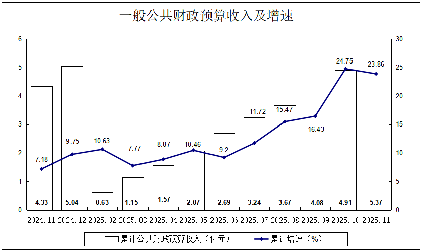 1-11月,在县委县政府的坚强领导下,全县上下认真学习贯彻党的二十大、二十届二中、三中、四中全会精神和中央、省市县委经济工作会议精神,按照党中央、国务院决策部署和省市县委、省市县政府工作要求,抓重点、强举措、重落实、奋力推动高质量发展,全县规上工业经济平稳增长,固定资产投资较快增长,限额以上社会消费品零售总额平稳增长,财政收增支增,金融存贷稳健运行。 (一)规上工业经济平稳增长 1-11月,全县规模以上工业企业完成增加值同比增长7.7%。从行业分类看:煤炭开采和洗选业累计完成增加值增长6.2%,化学原料和化学制品制造业累计完成增加值增长5.6%,非金属矿物制品业累计完成增加值增长24.8%,有色金属冶炼和延压加工业累计完成增加值增长0.2%,电力、热力生产和供应累计完成增加值下降16.7%,燃气生产和供应业累计完成增加值下降4.6%;从主要产品产量看:规模以上工业企业生产电石256158.19吨,同比增长5.93%,石灰240230.16吨,同比增长4.39%,瓷质砖1209.85万平方米,同比增长39.67%,商品混凝土657754.6万立方米,同比增长21.28%,水泥84680.49吨,同比下降5.28%,石墨及碳素制品249吨,同比下降18.09%,电解铝27.11万吨,同比增长2.85%,铝材55361.62吨,同比增长79.57%,锌1380.52吨,同比增长57.54%;从企业效益看:全县规模以上工业企业实现营业收入1239444万元,同比增长0.3%;实现利润总额130370万元。 (二)固定资产投资较快增长 1-11月份,全县累计完成固定资产投资同比增长17.6%,其中,城镇固定资产投资累计完成额增长23.52%;房地产开发投资累计完成额下降11.22%。从产业划分看:第一产业完成投资额增长68.80%,第二产业完成投资额增长17.02%,其中工业完成投资额增长17.02%;第三产业完成投资额增长15.02%。从经济类型看:公有经济完成投资额同比增长29.79%;民间投资完成投资额同比下降10.70%。 (三)社会消费品零售总额平稳增长 1-11月,全县限额以上商贸企业累计实现社会消费品零售总额179222万元,同比增长4.3%,其中:城镇零售额149742.5万元,下降9.3%,农村零售额29479.5万元,增长20.9%。分行业看,批发业实现零售额74894.3万元,下降9.3%,零售业实现零售额101941.8万元,下降2.8%,餐饮业实现营业额2385.9万元,增长18.5%。 (四)财政预算收增支增 1-11月,全县大口径财政收入为120563万元,同比增长26.09%。公共财政预算收入53659万元,增长23.86%。分项目收入看,税收收入完成36056万元,增长16.46%,非税收入完成17603万元,增长42.37%。全县公共财政预算支出439979万元,同比增长25.29%。 (五)金融存贷稳健运行 11月末,全县各项存款余额2141368万元,同比增长12.46%,其中:住户存款余额1768967万元,非金融企业存款153196万元,财政性存款236万元,机关团体存款218942万元。各项贷款余额1671137万元,同比增长14.27%,其中:住户贷款994419万元,企(事)业单位贷款651717万元。