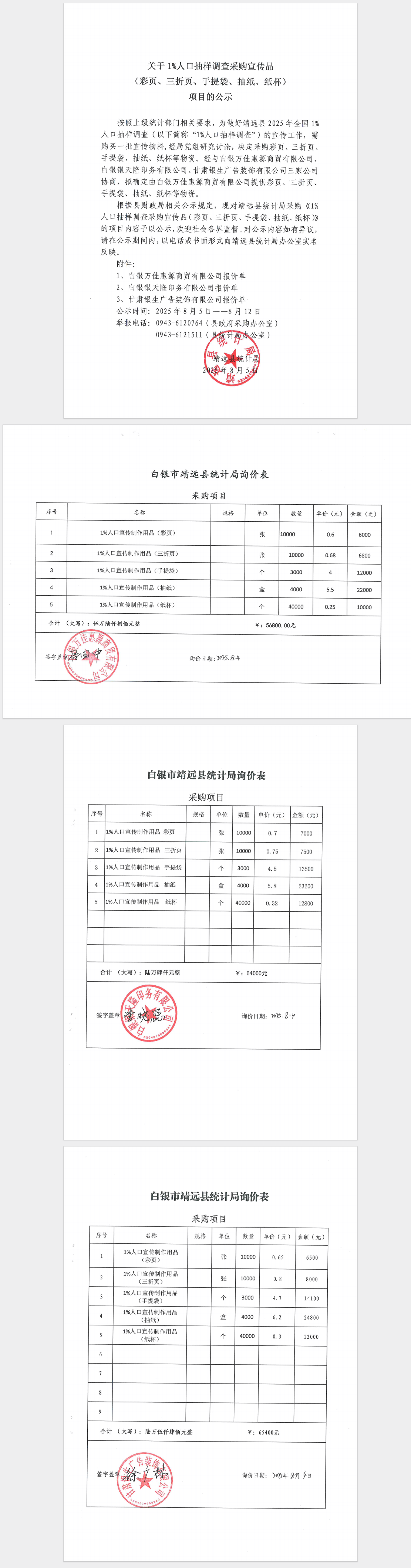 关于1%人口抽样调查采购宣传品(彩页、三折页、手提袋、抽纸、纸杯)项目的公示