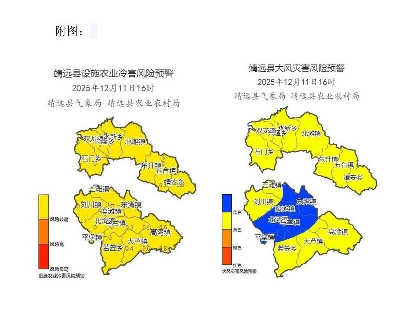 靖远县气象局、靖远县农业农村局2025年12月11日16时联合发布靖远县设施农业冷害和大风风险预警 根据靖远县气象台最新预报,今天傍晚到明天白天,我县出现5~6 级偏北风,阵风 7~9 级。受冷空气影响,今天傍晚至 13 日清晨,全县大部最低气温累积降幅将超过 6~8℃,靖远县北部、南部、部分乡镇有寒潮,最低气温累积降幅可达 8~10℃,局地可达 10℃以上。预计未来三天,我县大部低温持续。 目前,我县日光温室内的黄瓜、茄子等蔬菜已陆续进入开花结果期,而辣椒、番茄等蔬菜正处于缓苗期。预计出现的降温大风天气,可能对处于缓苗期的大棚蔬菜生长以及畜禽养殖造成不利影响。 预计 12 月 11~13 日,全县大部设施农业冷害和大风灾害风险较高。建议各地在降温天气来临前,做好设施大棚的保温防冻措施;畜禽养殖场(户)做好畜禽保暖;加强饲草料、兽药疫苗、消毒药品等应急物资储备和饲养管理。提前加固设施大棚,固定地膜边缘,防止大棚吹毁和地膜揭膜,未覆膜地方避开大风天气开展覆膜工作,避免损失。 附图: 来源:靖远县气象局 一审:王真 二审:滕爱琴 |