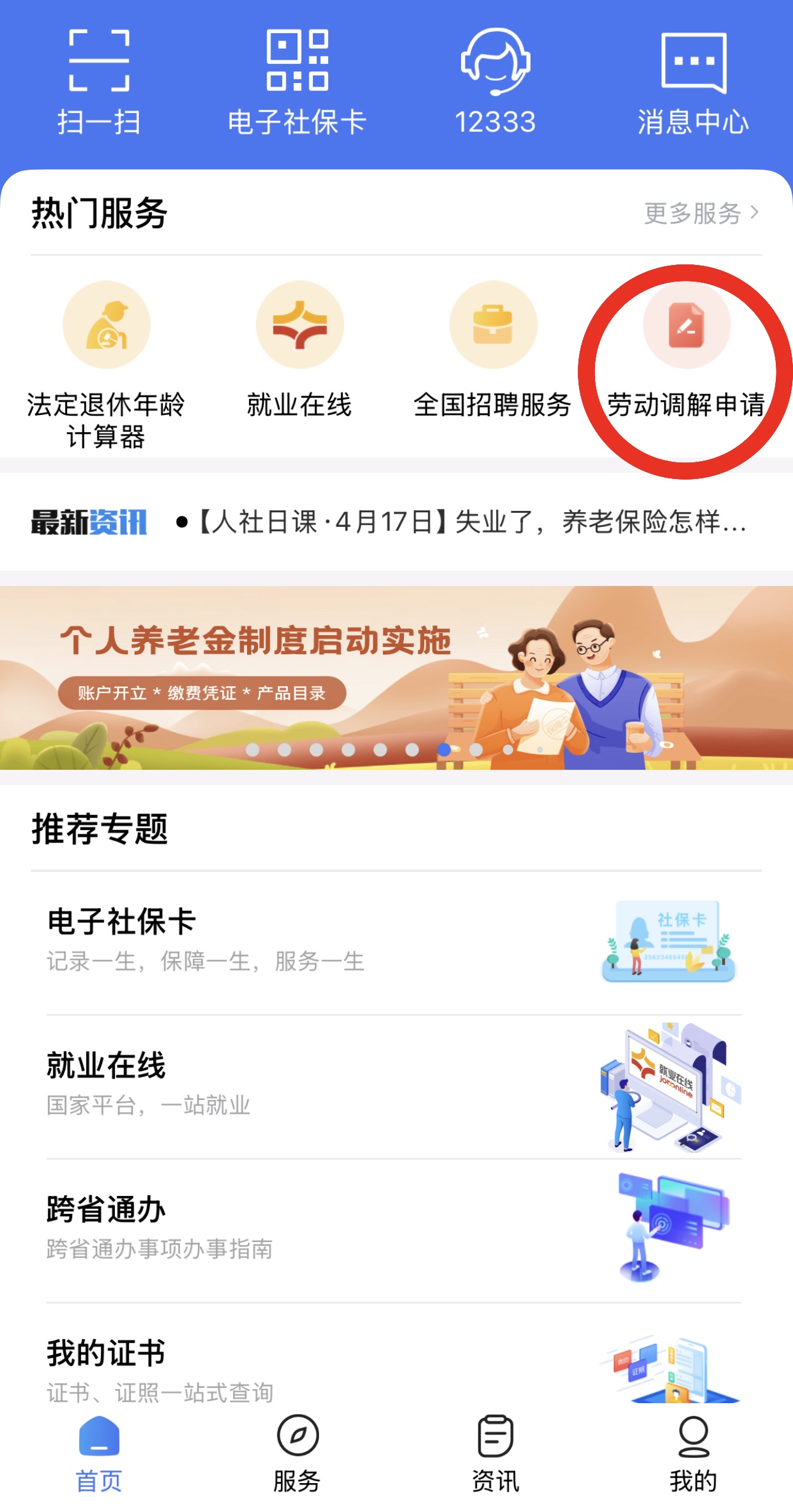 方式三:登录12333小程序或APP,点击“劳动调解申请”。