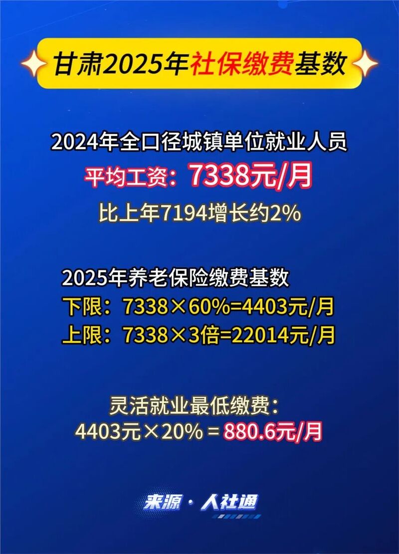 肃省2025年社保缴费基数(社平工资/养老保险缴费基数上下限) | |