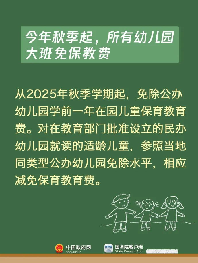 近日,国务院办公厅印发《关于逐步推行免费学前教育的意见》,明确规定从2025年秋季学期起,免除公办幼儿园学前一年在园儿童保育教育费。