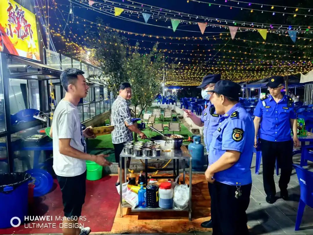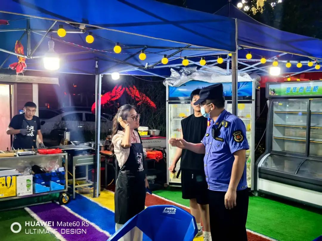 在便民市场、夜市等管理上,县执法局坚持“刚柔并济” 管理模式。每日安排执法人员对夜市和便民服务点进行巡查,协助商户规范摆放摊位、检查水电、燃气安全设施等使用情况,督促商户落实环境卫生责任,确保摊位整洁有序;采取“定时巡查 + 动态监管”方式,以“说理式执法”普及法律法规,及时劝导、规范超范围经营、噪音扰民等违法违规问题,引导其入点入市规范经营。