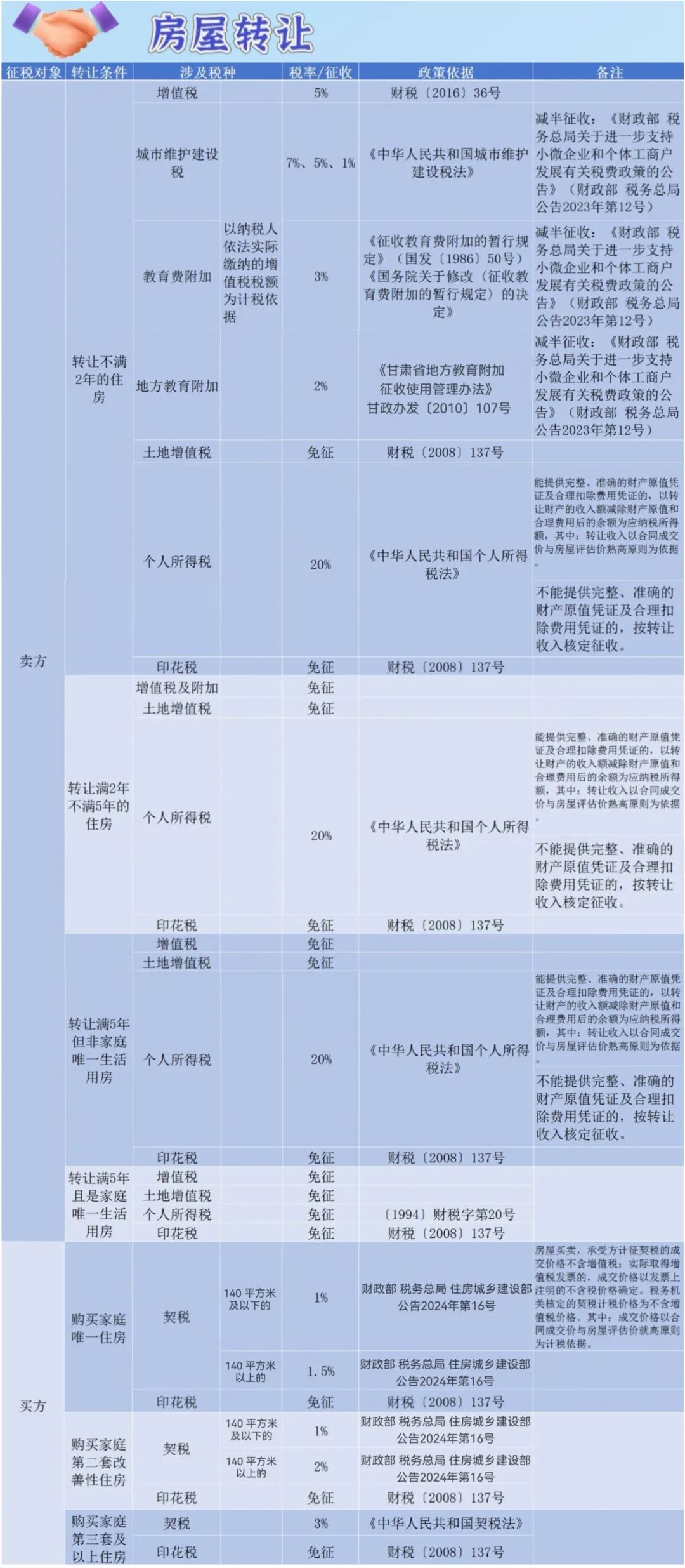 在日常生活中,房屋转让、继承、赠与等是常见的不动产涉税业务,那么您了解这些情形分别需要缴纳什么税费吗?按照不同的转让形式,为您整理了相关税费政策,一起来了解一下吧!